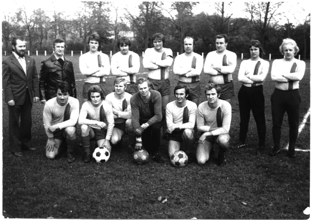 Die 1. Mannschaft von Aktivist Staßfurt im Jahre 1978. Hinten von links: Betreuer Hans-Peter Müller, Trainer Edgar Stein, Holger Michalak, Gerd Huxol, Klaus Kanthack, Wilhelm Reisnauer, Gerhard Oley, Uwe Lieder, Wolfgang Curth. Vorn von links: Dirk Lehmann, Herbert Mandel, Otto Krampe, Wolfgang Sieglitz, Bernd Bosse, Reinhardt Schellmann.