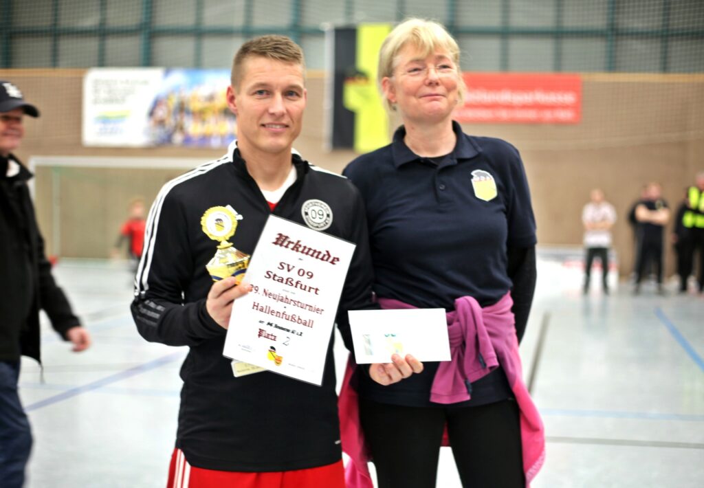 Im Finale zwischen dem SC Bernburg und dem SV 09 Staßfurt setzten sich die Lokalmatadoren des SCB dann nach einer starken Leistung mit 7:1 durch. Patrick Stockmann aus dem Trainerteam der Saalestädter zeigte sich nach dem Turnier begeistert von der Leistung seines Teams: „Es kam für mich schon etwas überraschend, dass wir so ein gutes Turnier gespielt haben. Wir sind jetzt nicht unbedingt die Hallenmannschaft schlechthin. In der Vorrunde hatten wir auch ein wenig Losglück, weil wir die vermeintlich leichtere Gruppe hatten. Wir haben in fünf Spielen ein Gegentor bekommen und das war ein Neunmeter im Finale. Das war schon irre. Wir haben uns natürlich sehr gefreut und sind als Einheit aufgetreten, wollen es auch nicht überbewerten, aber vielleicht können wir den guten Spirit aus der Halle mit in die Vorbereitung für die Rückrunde nehmen.“