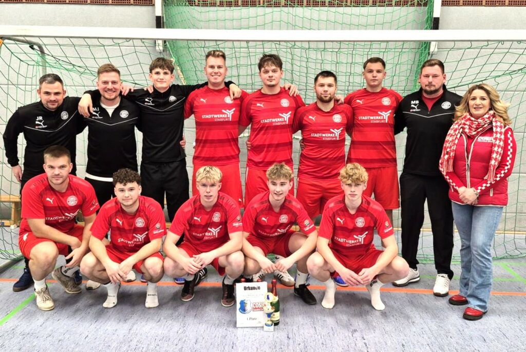 Der SV 09 Staßfurt hat, wie gestern kurz berichtet, am Samstag das Hallenturnier um den Cosic-Cup gewonnen. Im Finale gab es die gleiche Paarung wie im Vorjahr, wobei der Landesligist diesmal den Spieß umdrehte. Gab es doch hier, nachdem das Spiel 3:3 endete, ein 5:4 im Neunmeterschießen. Florian Neugebauer und Thorben Zöger verwandelten jeweils zweimal, einmal netzte Robert Lampe vom Punkt ein.