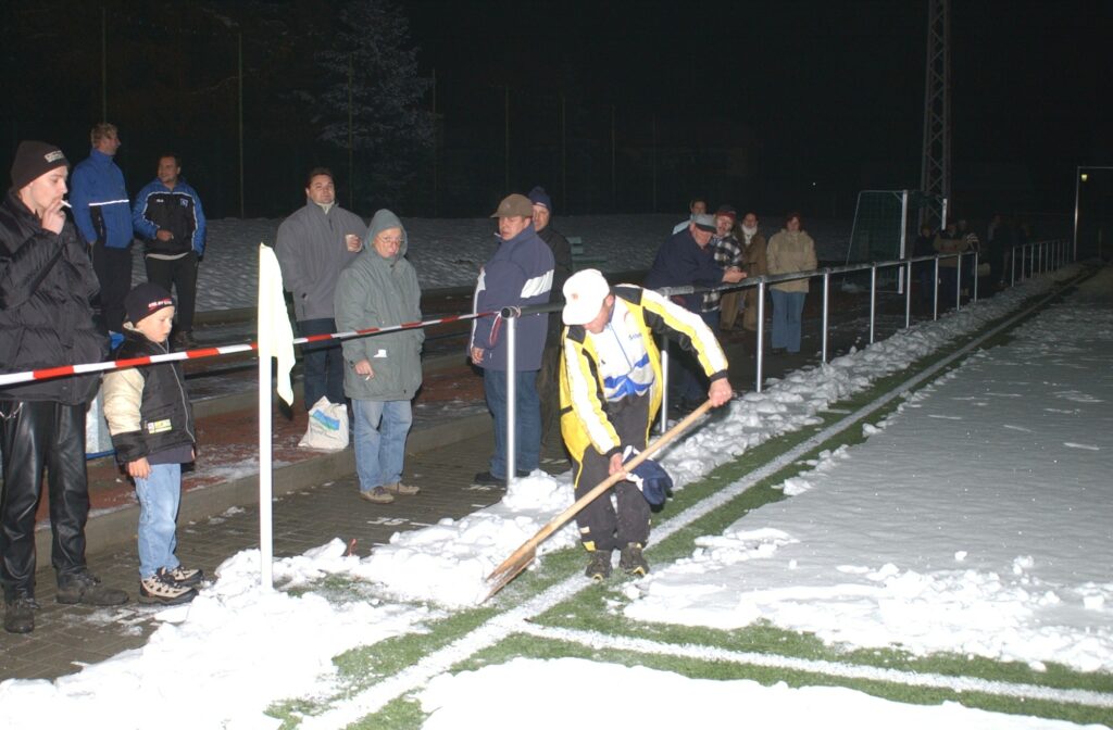 Wie kommt man am 01. Februar des Jahres 2026 auf den 19. November des Jahres 2004? Die Antwort ist ganz einfach. Es hat mit dem Foto von Hartmut Brose in der Volksstimme vom vorigen Donnerstag zu tun. Denn dieses wurde am „Blickpunkttag“ geschossen, und trotz der Schneemassen auf und neben dem Platz wurde auf diesem auch gespielt. Und es war nicht irgendein Spiel.