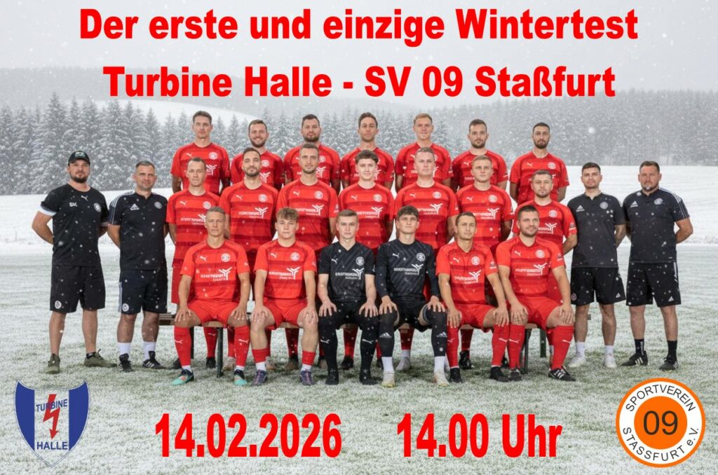 Heute bestreitet die 1. Mannschaft des SV 09 Staßfurt nach zuvor drei vergeblichen Anläufen tatsächlich ihren ersten und einzigen Wintertest des Jahres 2026. Um 14.00 Uhr ist sie zu Gast bei Turbine Halle.