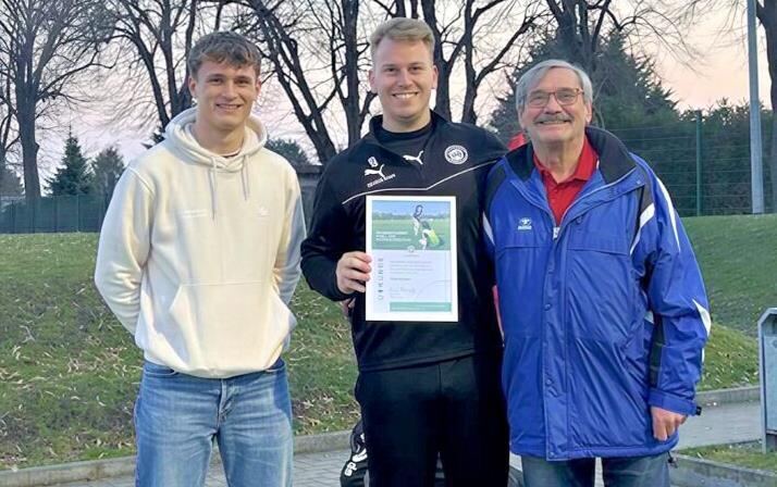Max Dittwe (Mitte) vom SV 09 Staßfurt bekam die Urkunde für seine Fairplay-Geste.